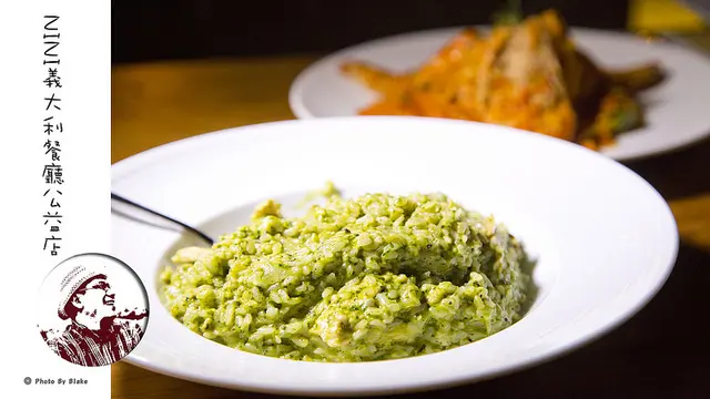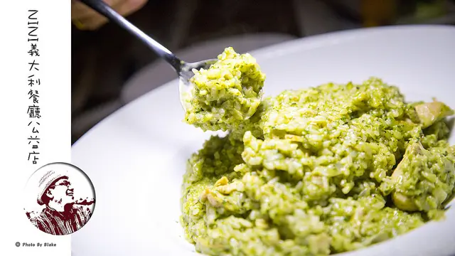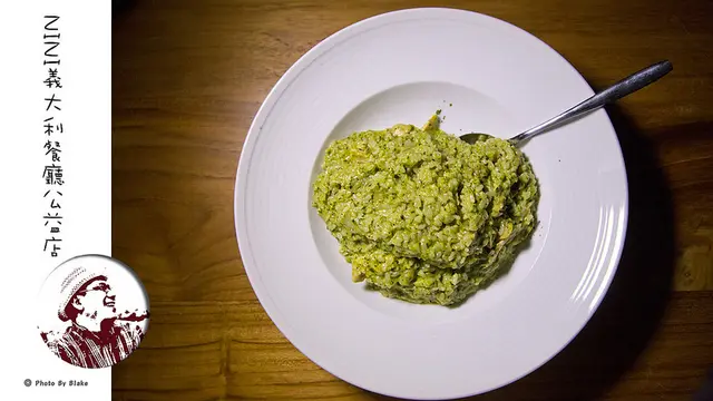 主廚特製每週燉飯會依照時節搭配不同的醬料與主食材,布雷克這次來剛好是青醬雞肉燉飯,又是再一次嚇到的份量,整盤的燉飯吃完,布雷克一整個就超飽的,男生吃都會覺得過多,女孩子來吃應該會覺得有剩,這裡的青醬都是每天新鮮去打的,料理也是現點現處理,一上桌就能聞到濃濃的青醬味。