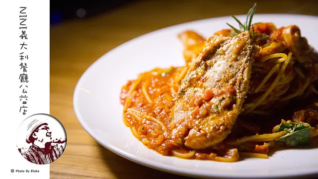 NINI尼尼義大利餐廳台中公益店的義大利麵真的是不錯,麵條吃起來很有彈性,口感上很棒,搭配的蕃茄辣肉醬,微微的辣味與清爽的蕃茄味搭配的剛剛好,雞肉整塊吃很豪邁,雞胸本身很軟嫩,但還是有一點點乾,建議與紅醬一起入口,吃起來層次感比較多。
