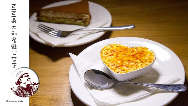 套餐的餐後甜點有提拉米蘇與焦糖烤布蕾兩種,布雷克與布媽各點了兩種不同的甜點,焦糖烤布蕾的焦糖是比覺薄的那一種,所以一上桌,服務生就建議盡快吃,要不然焦糖會融化,薄焦糖還是帶有一點脆脆的,不會太硬,與布蕾一同吃下,甜味、微焦與蛋香在嘴內融合著,還不錯吃,布蕾也不會烤得太過,還保有滑嫩的口感,比起之前在台茂店吃到的還不錯吃,可能是這次一上桌就吃的關係吧,上次真的放的太久了。