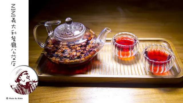 餐後服務生建議布雷克來壺黃金山脈花果茶,服務生說這是NINI尼尼義大利餐廳的招牌飲料,是選用德國進口的花果茶,喝起來酸酸甜甜還帶有茶香與水果香,洛神花的味道也有出來,熱熱喝很暖胃,讓今天的用餐有著不錯的句點。