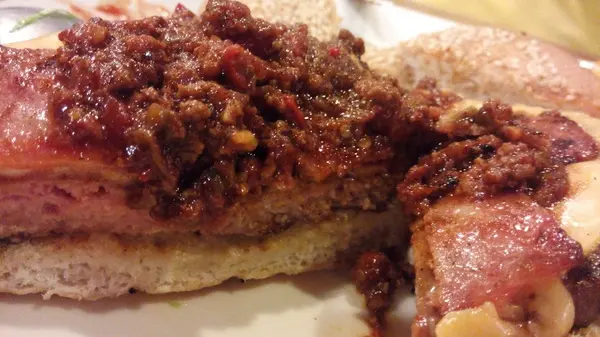這個漢堡是重點中的重點~果然嗆辣夠勁、好吃!!!味蕾上的感受是辣肉末醬的辣頭,