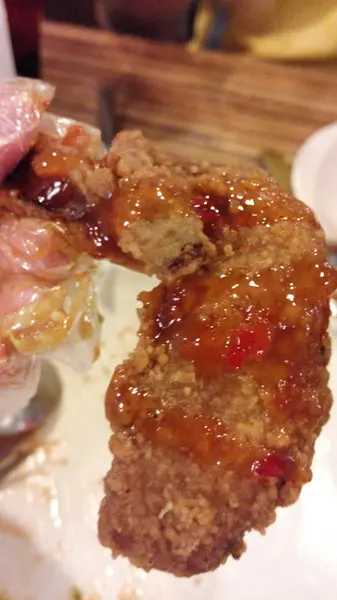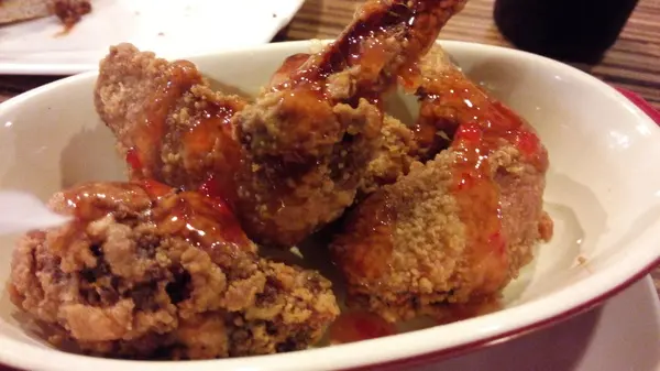 招待:泰式甜辣雞翅 90元 外皮炸的非常酥香,色澤稍為重了些,但這樣的炸物口感卻相對擁有特香酥的外皮,
