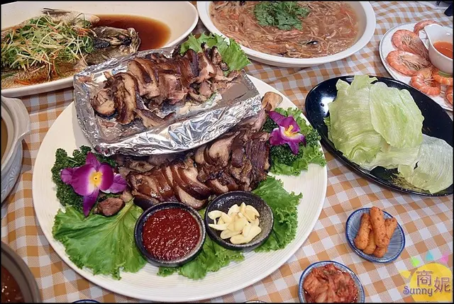 這一道韓式豬腳是親水河畔的招牌菜色,年菜的份量是店內單點的兩倍量,裝盤後再加上生菜葉整個好澎湃。