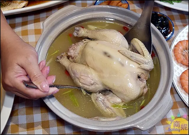 完整的人參雞,外帶年菜回家正好可以拜拜。