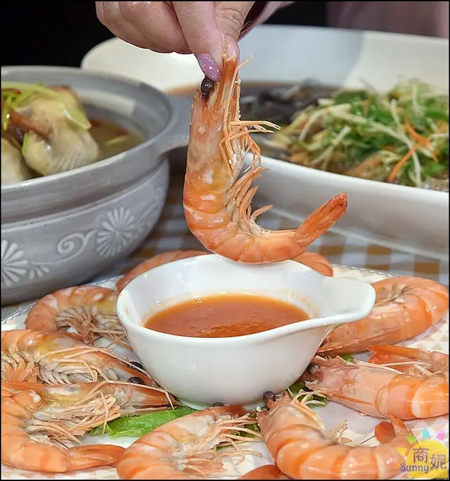 圍爐年菜少不了海鮮大菜,這道選用新鮮大白蝦,汆燙方式即可吃到大海的美味。