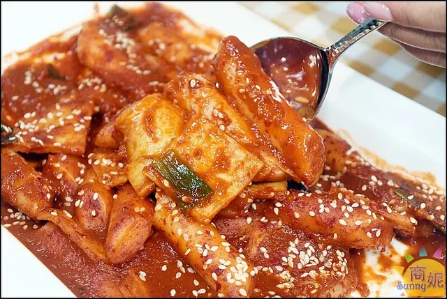 年糕加韓國魚板與老闆娘特調的辣醬一起炒,香辣帶勁好過癮啊~