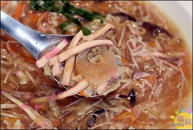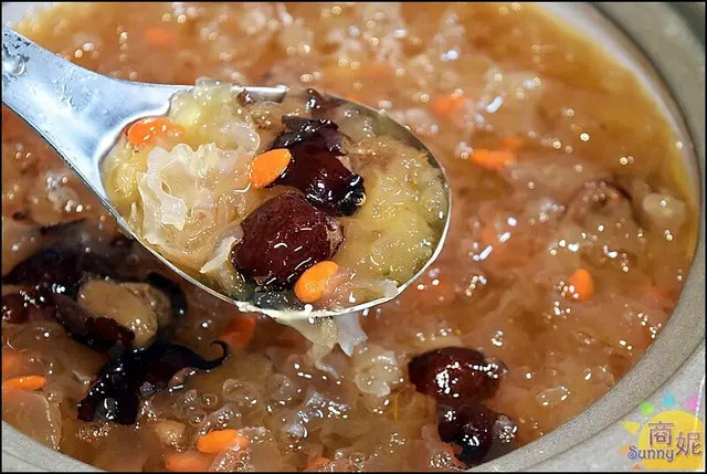 甜湯份量也是不少,滿滿的銀耳、紅棗、枸杞,慢火熬煮有好多植物膠原蛋白,甜度不高喝起來很順口,養生又健康。