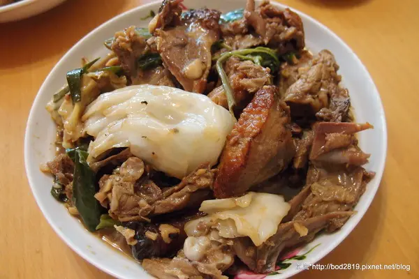 然後這是炒鴨肉的部分,我覺得真的挺多的耶, 另外店家還加入了高麗菜,一份是30元, 這讓炒鴨肉中多了高麗菜的清甜耶,高麗菜吸附了醬汁以後變得好唰嘴! 鴨肉滋味也很不錯,有加入九層塔及蒜頭爆香,鹹香滋味很下飯, 而且還有一點甜甜的,爸爸一邊吃一邊稱讚耶! 不過比起炒的,我更愛一片一片的鴨肉