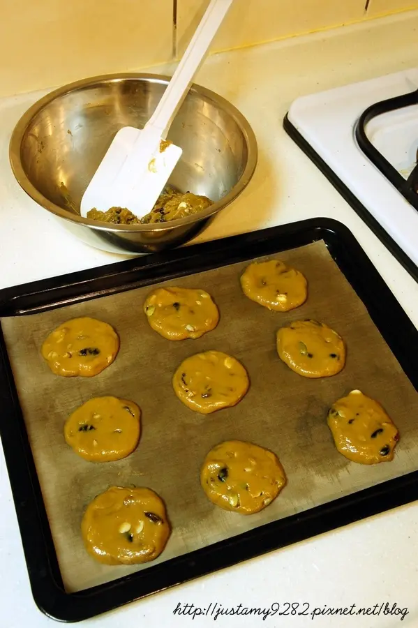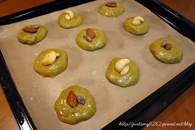 6. 將烤盤放入事先預熱好180度的烤箱,烤個15~20分鐘即可出爐