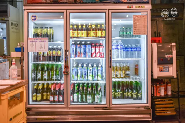 那兩蚵戶外夜景餐廳的飲料、啤酒都在這台冰箱裡,價格也都貼在玻璃上方。(喝酒不開車,開車不喝酒)