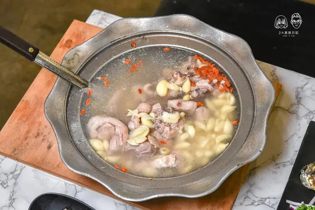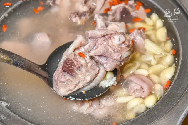 蒜頭雞湯以蒜頭、枸杞、雞肉來熬煮,湯頭清澈甘甜,有著淡淡的蒜頭香氣,而且越煮越甜越好喝!讓人很容易一碗接著一碗~