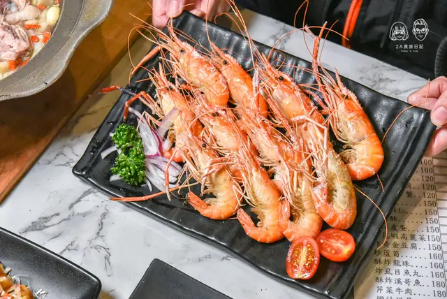鹽烤泰國蝦選用新鮮的活蝦來製作,抹上鹽烤過的泰國蝦肉質飽滿有彈性,蝦頭部位還吃得到香甜的蝦膏,再加上外層的鹽,讓蝦子吃起來更甜美!新鮮的蝦子不用沾醬就很好吃!