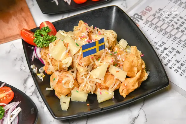 鳳梨蝦球的蝦子用的特別大隻,不得不說是目前吃過最大顆的蝦球!蝦球的麵衣比較偏厚,但口感非常清脆,吃起來甚至有點像餅乾!