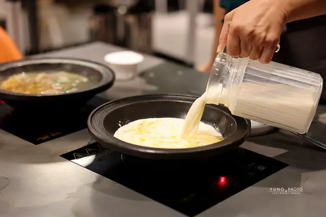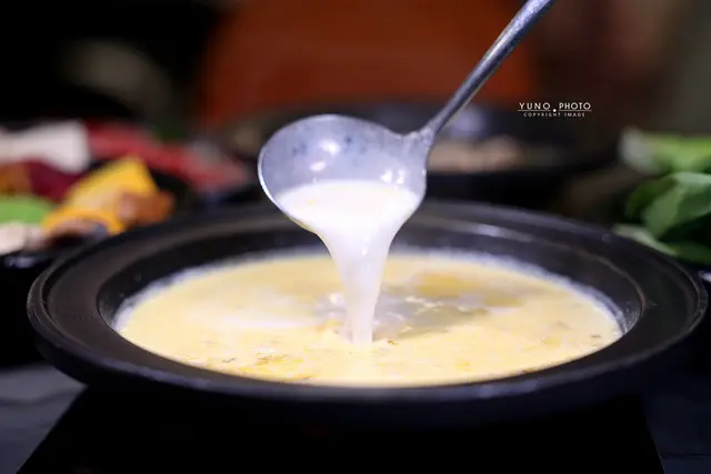 接下來緩緩倒入牛奶 加入起司片慢煮 使整體湯頭更添一層奶香濃韻 最後灑上淡雅的桂花碎點綴 溫潤中帶一點甜香 喝起來香濃卻不膩 讓人一喝就上癮