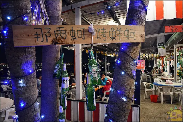 停好車,進門處有椰子樹掛著啤酒瓶以及木製招牌迎接我們
