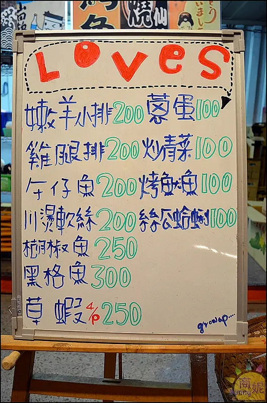 除了固定的菜色,白板上也會寫上每天新鮮進貨的隱藏版菜單