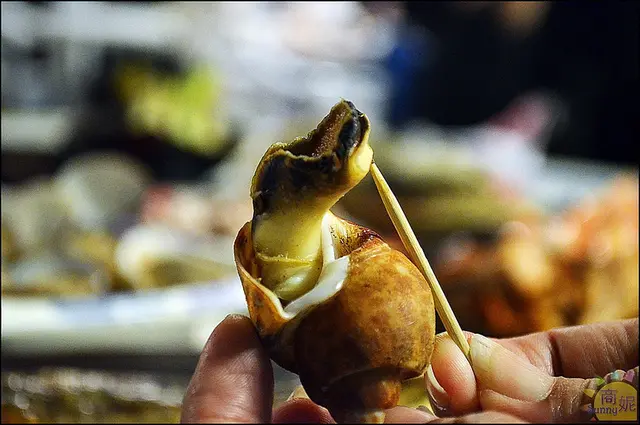用牙籤拉出,風螺的肉質Q彈飽滿,好吃!!