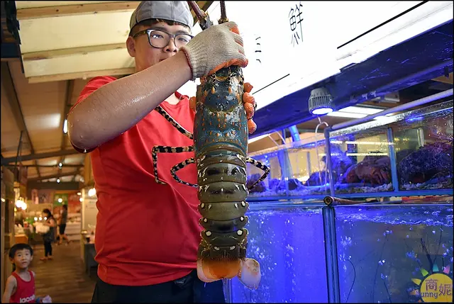 商妮是週四晚餐來,有些水族箱中龍蝦數量比較少,剩下的個頭還是很大光是看就很過癮