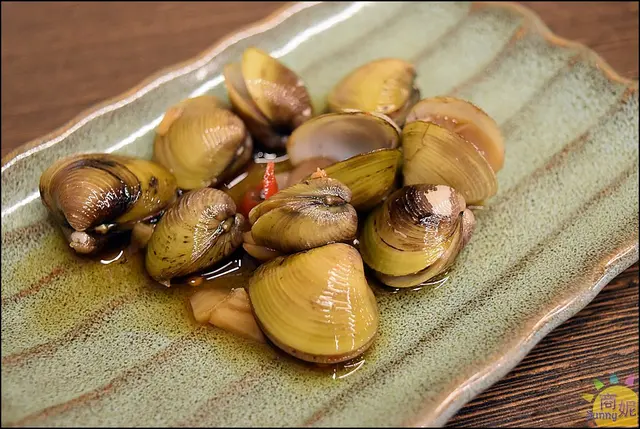 老闆的媽媽手作私房小菜,鹹蜆仔甘甘甜甜的,好吃~