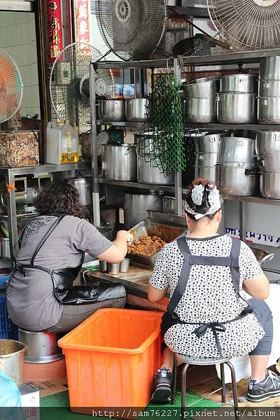 阿姨忙著將滷好的五花肉和米糕組合再拿去蒸~