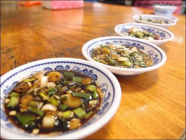 但是沾醬都已經拿了,不沾一下好像對不起老闆,果然加上醬油醃過的蔥,整個水餃味道大幅度提昇