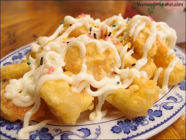上菜了!鳳梨蝦球,中規中矩,蝦球很多顆,不像有些快炒店...嘖嘖嘖...吃沒幾隻就剩鳳梨了