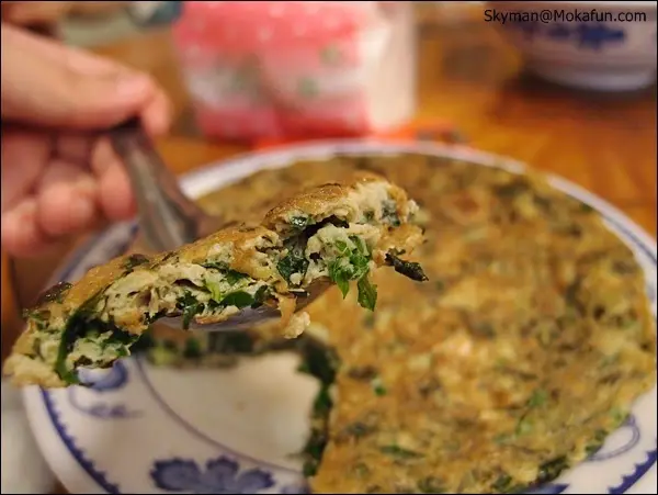 九層塔煎蛋,由圖可知,滿滿的九層塔啊!厚度也非常的有誠意!很香很下飯!也不油膩