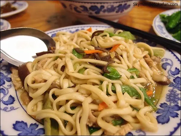 炒麵,麵條是有點厚度的麵體,吃起來有咬勁,可增加飽足感,但個人還是偏好細一點的麵
