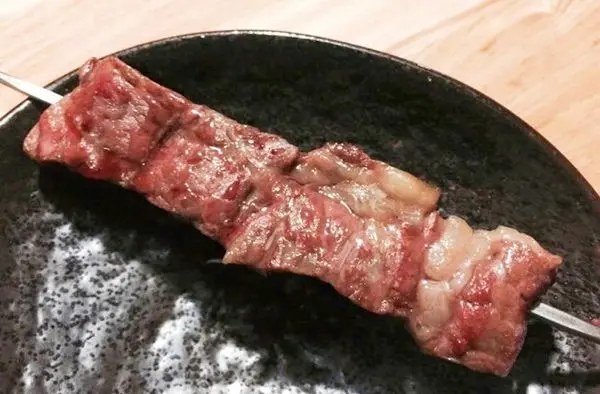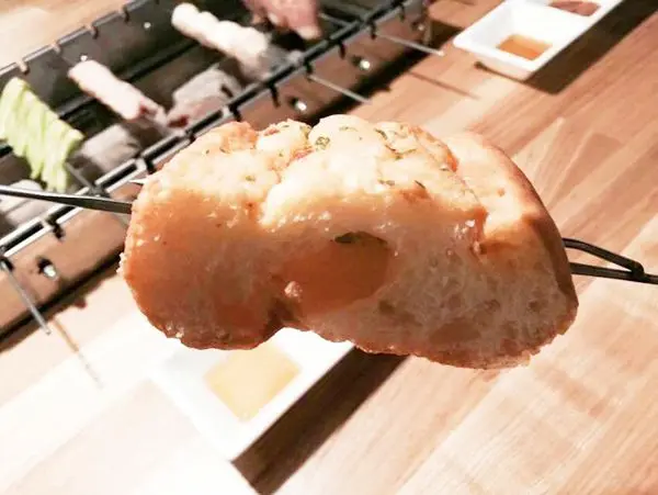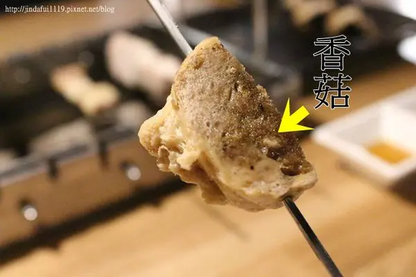 老闆說香菇貢丸的點檯率很低,因為大家至串燒店都不會想點貢丸(我覺得滿人之常情的啦,且通常好像也不會賣貢丸XD?),所以同行人決定點來吃看看,達成第一次吃烤貢丸的體驗,只是老實說味道吃起來我們都沒有特別的感覺