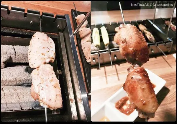 爵 旋轉串燒 炭烤很適合一群(懶惰的)朋友來享用,老闆是個和藹可親的帥哥,不過爵的生意很好,建議最好至少前兩天就預約,我們用餐的當天預約滿到九點多,還有很多沒預約的人直接來詢問