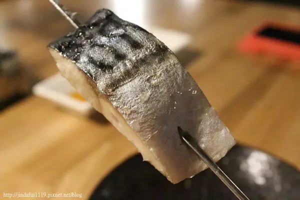 先在鯖魚的表皮上刷了一層薄薄的鹽巴再交給我們(其實是烤爐)炭烤一番,整體滋味頗為鮮甜,肉質也算是細緻,只是有刺無法放鬆地大口吞嚥