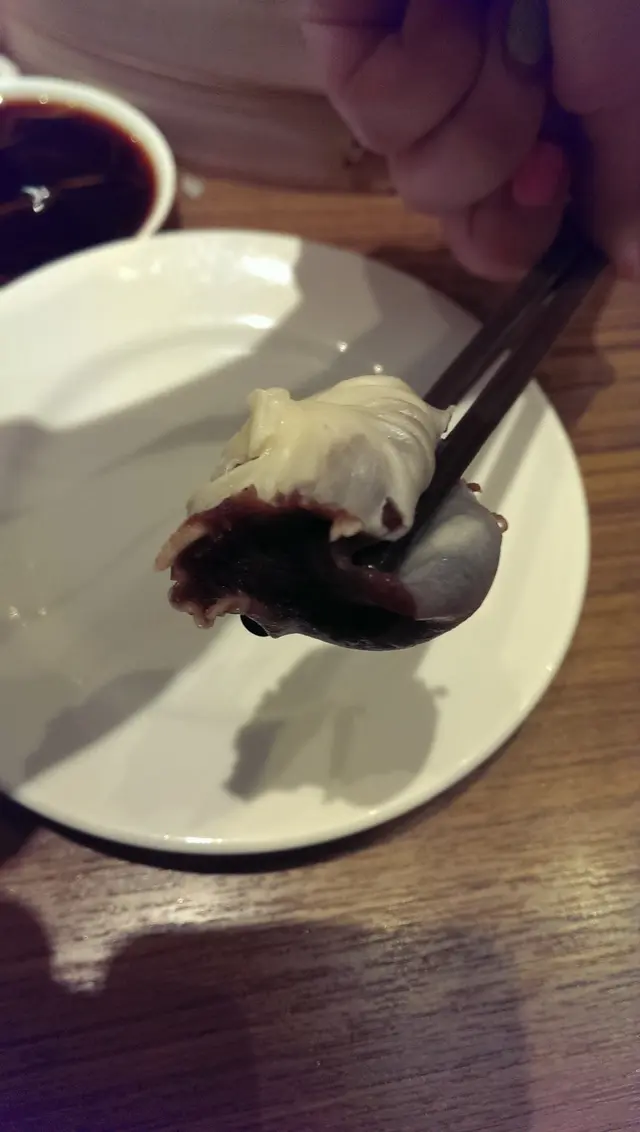 本來想點芝麻包來吃,但是看到豆沙小籠包好像還不錯,用筷子夾的時候就黏住了XD
