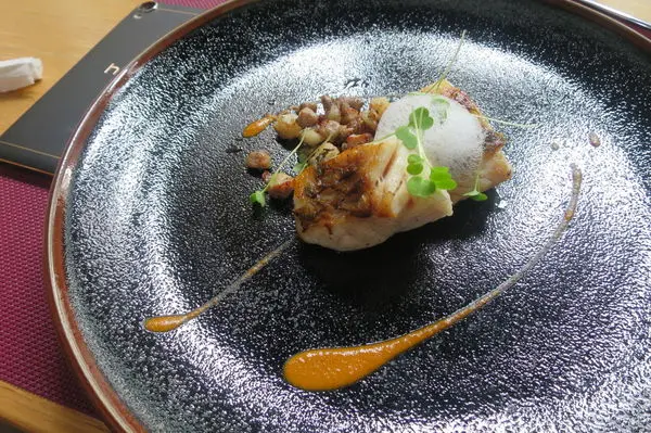 友人點的是季節鮮魚 看起來很不錯 法國料理常有一些泡泡在食物上