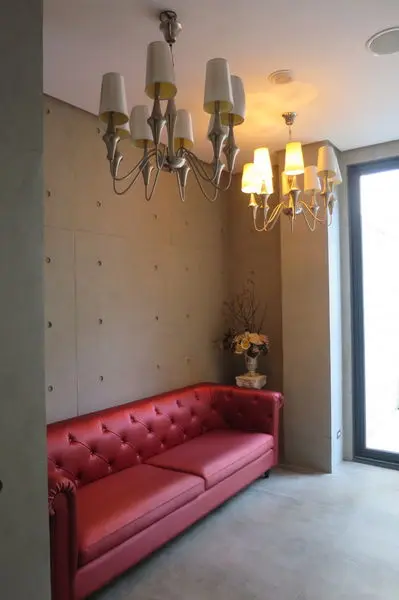廁所也走法是豪華路線 還放了紅色的沙發椅 可以讓小姐邊化妝邊休息