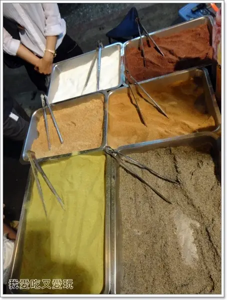 攤位擺了許多五顏六色的,好多種口味的感覺.....