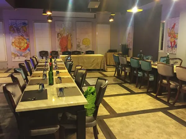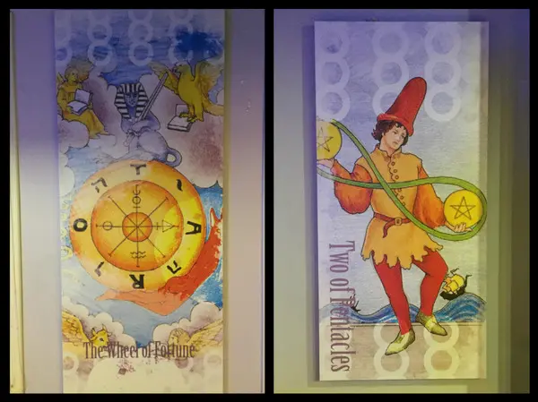 牆上有塔羅牌風格裝飾