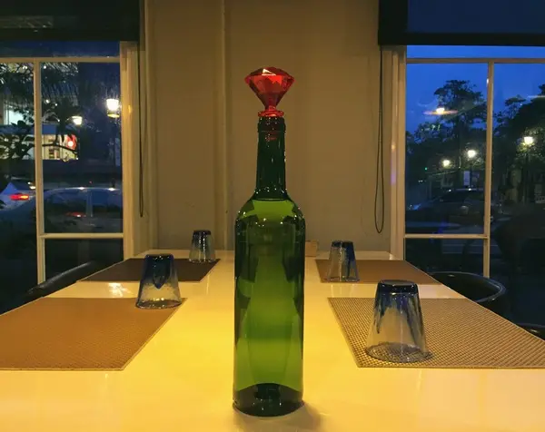 很好看的翠綠色玻璃水瓶(還插著鑽石造型瓶塞