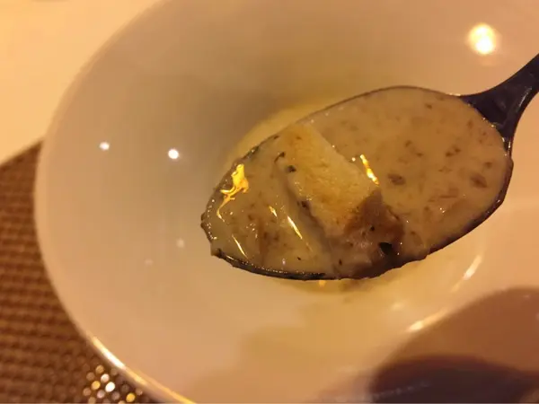 屬蕈菇濃湯,喝起來是蕈菇味道大於奶味 湯頭滑順不會過於濃膩