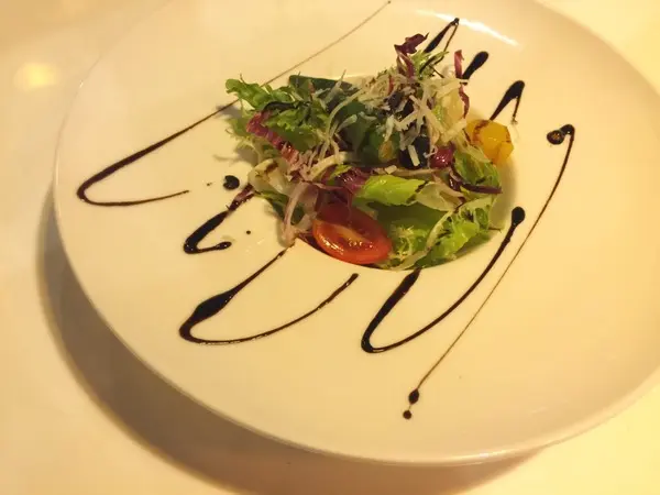一大盤沙拉給我們分食,醬料是比較清淡的油醋醬
