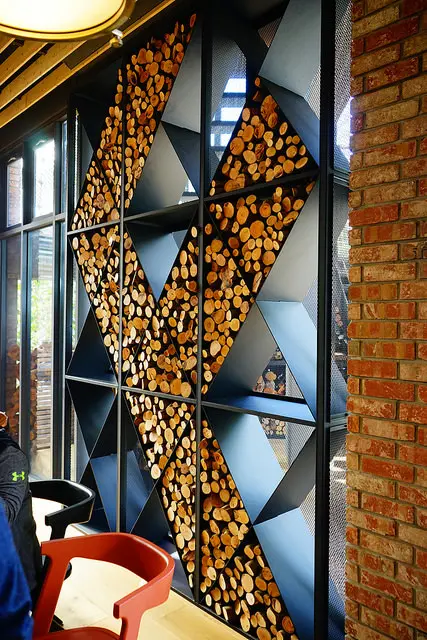 店內自行開發的全國唯一原木燒烤烹飪爐具,光是這個新鮮的玩意就看的我們一行人哇哇大叫的讚嘆,用右邊的爐子將木頭燒成木炭燃後再移去左邊的燒烤台下,這個特殊的燒烤爐具是主廚親自與廠商經過上百次的溝通與微調所設計出來的,足夠應付尖峰時段近百份餐點的出餐需求