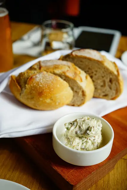 尾韻略帶酸味口感的健康麵包,抹醬超好吃,還有一種似曾相似的味道,原來是優格加上豆鼓,豆鼓切的好細碎,反而不鹹卻是略帶甘味,酸酸甜甜的,搭剛剛的炸豬皮也好香,吃到這裡感覺有一點點RAW的影子存在