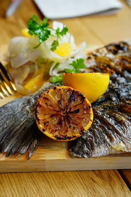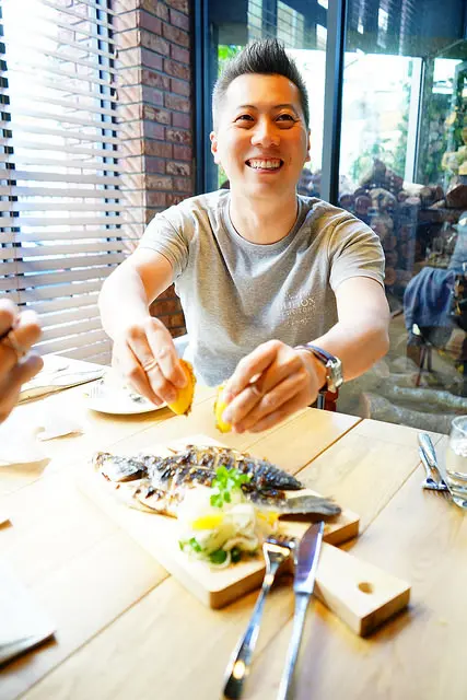 擠上黃檸檬,烤過的黃檸檬湯汁更甜美唷!肉質很細緻,就連皮也好好吃