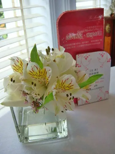 等待之餘來賞賞桌上的盆花,即將要推出母親節頂級龍蝦佐鮮鵝肝雙龍套餐,每人3800元,好想試試看唷!龍蝦耶!鵝肝耶!
