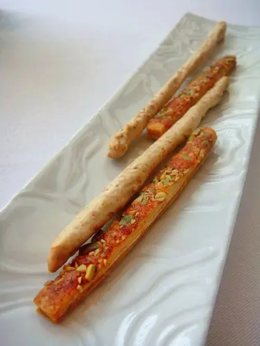 開胃小點這兩樣都很優,一個是千層酥,上頭有南瓜子與紅椒,另一款是有著濃濃起司味的起司棒,千層酥雖然細細一條,可是層次很多很豐富,兩款都是我很愛的香、酥、脆口感,真想再來幾根,小小一根,吃起來很優雅呢!