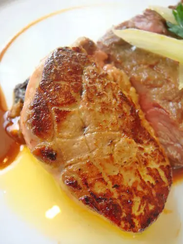 鵝肝一向是我的最愛,我超愛那肥厚的油脂以及迷人的香氣,那種豐腴多汁的感覺,令我魂縈夢牽,我不得不舉起大拇指說樂沐的讚,因為它的鵝肝給的超大一塊的(我就是俗加貪小便宜咩!)以往吃的鵝肝份量都只是塞牙縫用的,這裡實在是大氣,大大方方的給了一大塊,水啦!