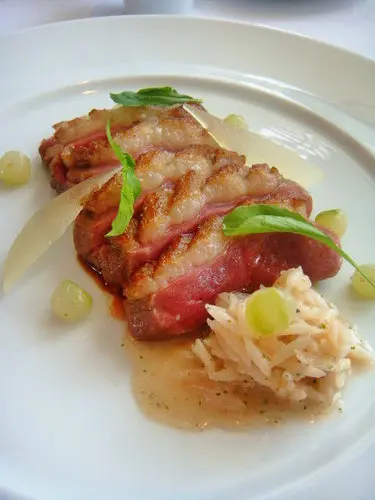 鴨胸肉也很肥嫩,但是我們比較不愛那個肥肥的皮,所以把它挑掉了,沒把食物通通吃完很怕對廚師不敬呢!可是我們倆都不敢吃皮啊!