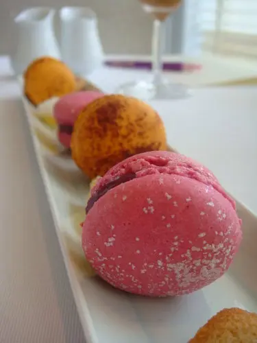 搭配茶與咖啡的茶點,建議先吃financier蛋糕,再來是macaron,最後才吃軟糖,軟糖是椰子與鳳梨做成的雙色軟糖,頗有南國風,味道頗為清爽