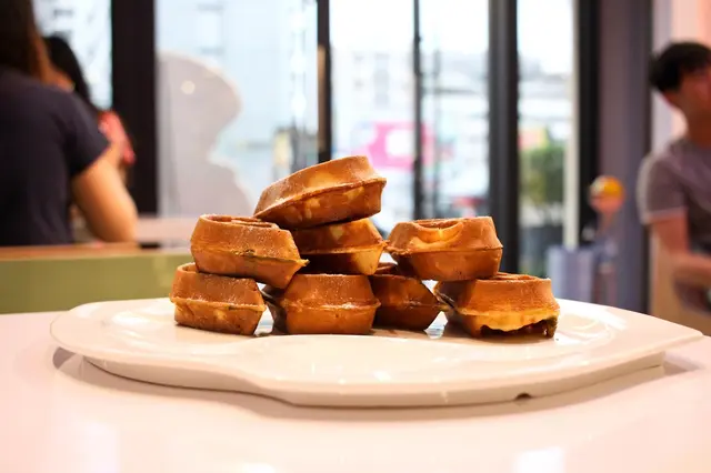 鬆餅裡頭包著濕潤的抹茶,目前沒有提供怕等太久貼心先送上鬆餅來。