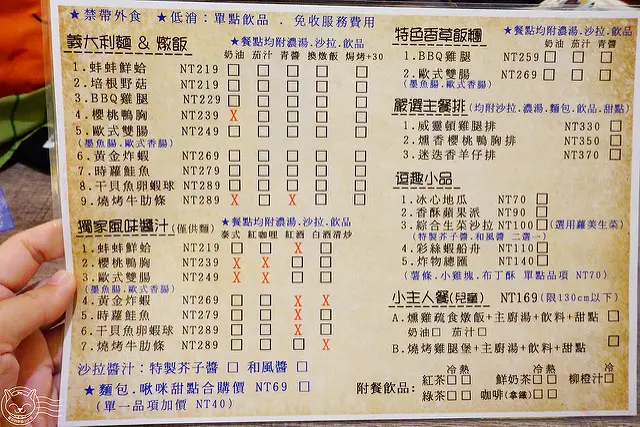餐點屬於中平價位,早午餐從190元-220元,主餐由219元-370元,