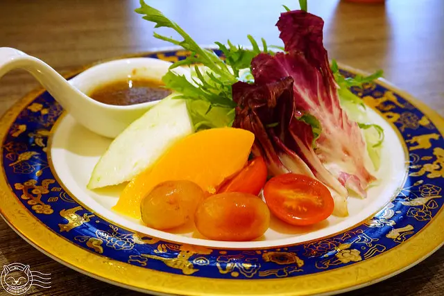 附餐沙拉選擇了和風醬汁,擺盤很漂亮,一點也不像附餐沙拉,